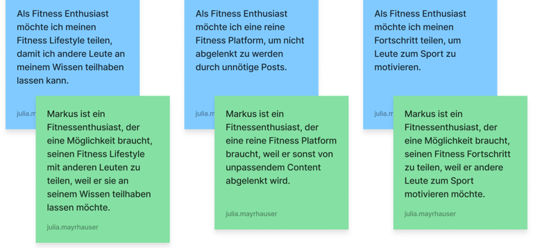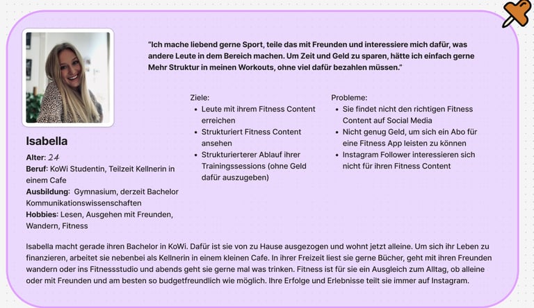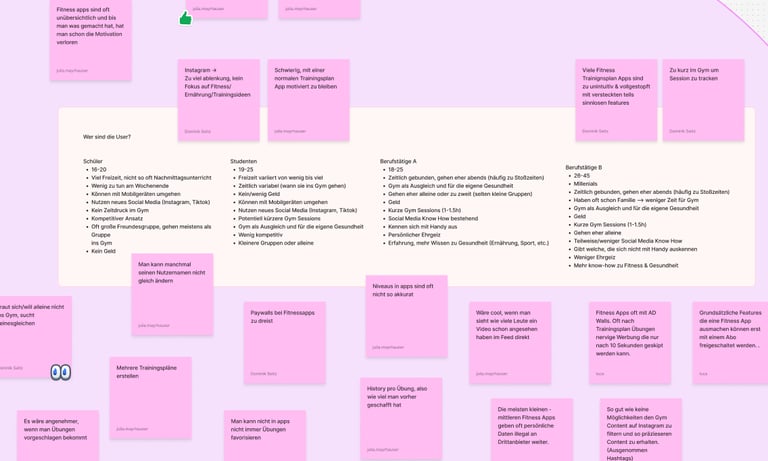 Our user research progress was rather unstructured - we just asked acquaintances about their experiences with workout apps, like what problems they had with them and what they would expect from these apps.