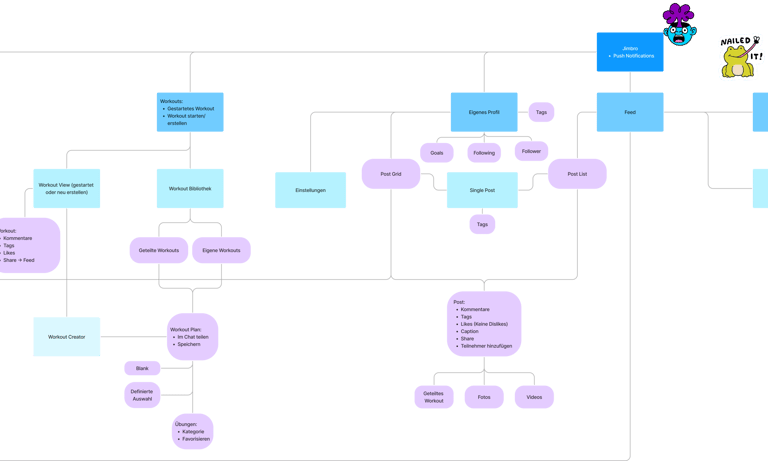 I started developing the app using NestJS and Typescript for backend and Flutter for frontend. The initial goal was to have it running on a local server, so my friends and I could use it. Due to time constraints and other projects coming my way, the Jimbro development had to go on an indefinite hiatus.